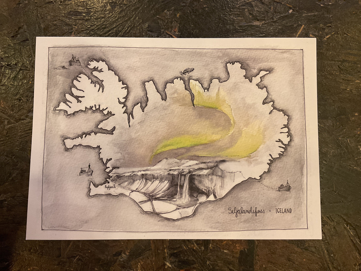 The A5 Postcard featuring Seljalandsfoss by Jana Tomanová showcases a detailed illustration of Iceland's renowned waterfall, while elegantly incorporating the...